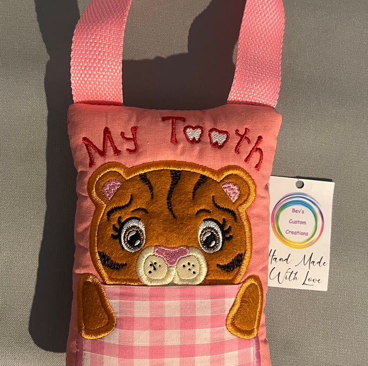 Handmade embroidered Tooth fairy pillow, no more searching for your little ones tooth under there pillow, just hang this little cushion on the door and place the tooth in the pocket.