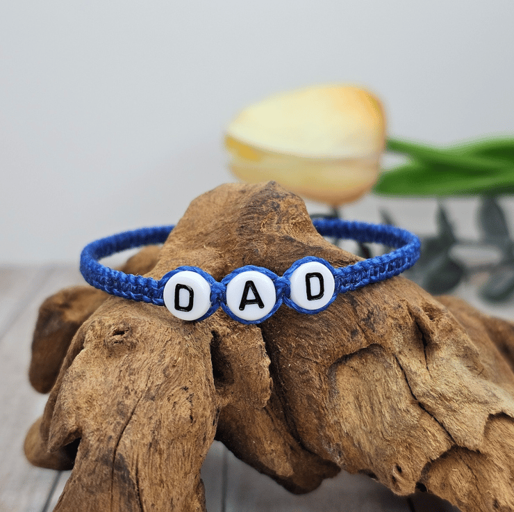 This beautiful "DAD" charm bracelet is made from high-quality Brazilian waxed cord – resistant to fraying and ultraviolet exposure. It is also washable and the vibrant colours do not run.