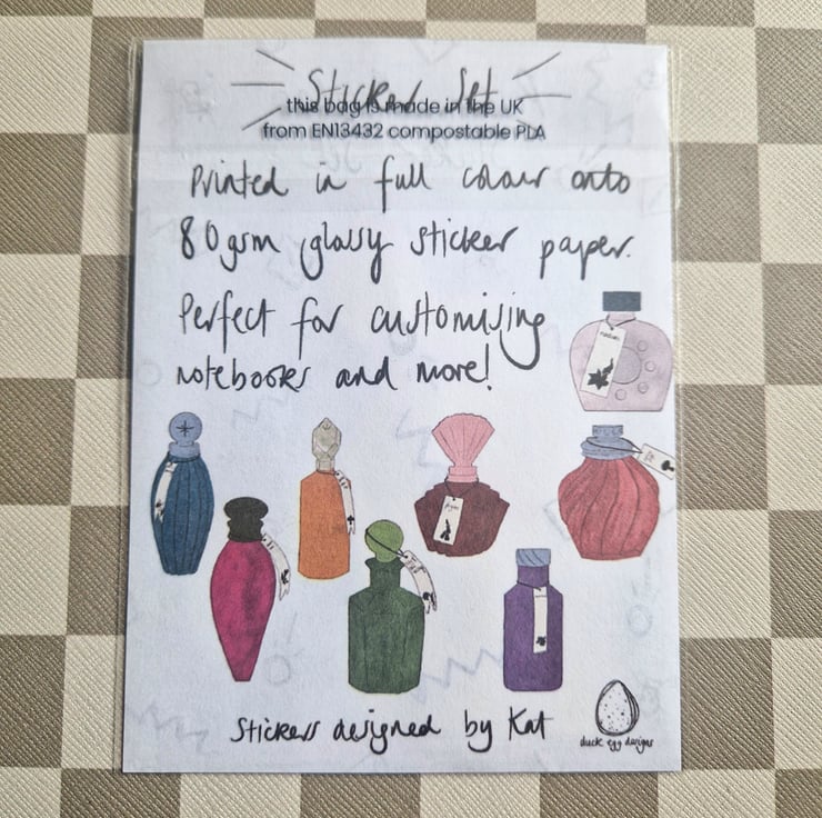 Poison bottles sticker set inspired by vintage perfume bottles. Illustrated by me and made with 80gsm sticker paper in my little studio.