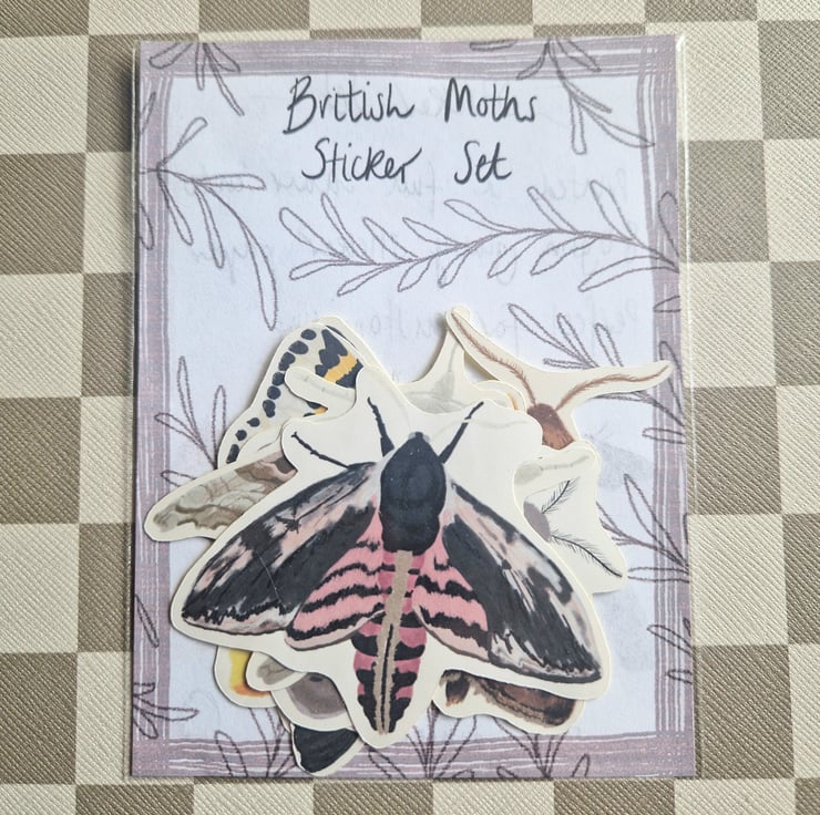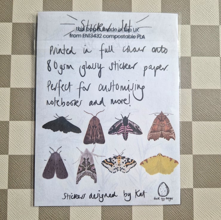 Moth stickers illustrated by me and made in my little studio using 80gsm glossy sticker paper.