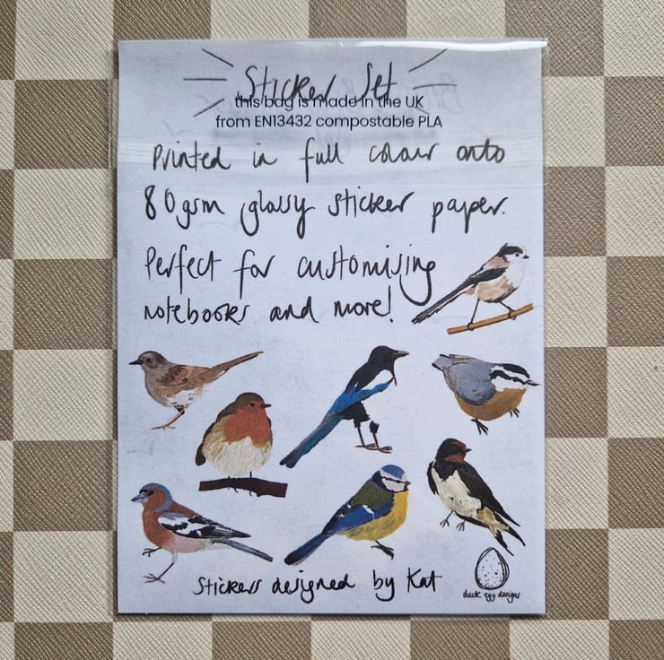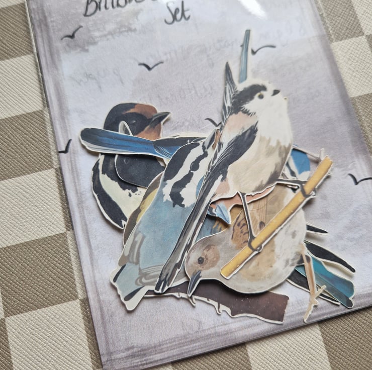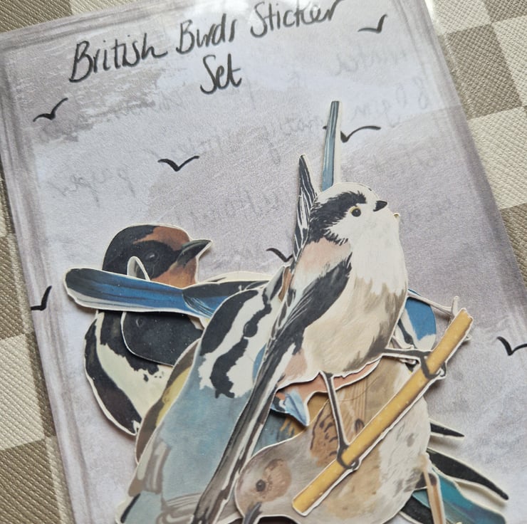 British birds sticker set illustrated by me and made in my little studio using 80gsm sticker paper. Each set contains eight different birds - chaffinch, magpie, dunnock, blue tit, long tailed tit, robin, swallow and a nuthatch.