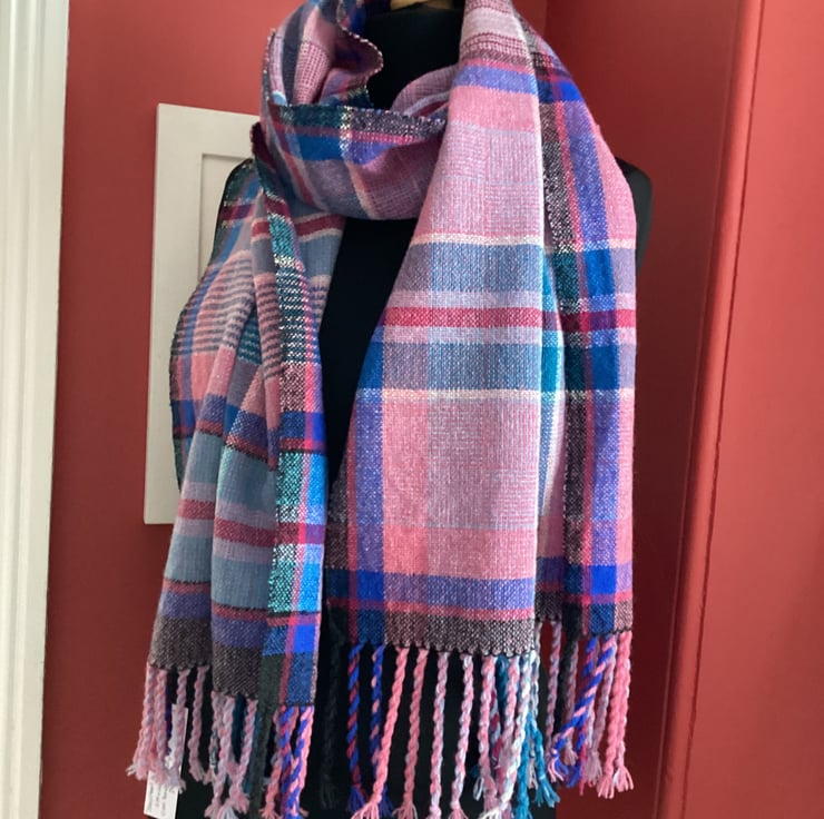 Sancreed Sunset Scarf is handwoven from merino lambswool, designed and woven by me on my 8 shaft loom. Inspired by the Winter setting sun. This soft comfy scarf measures 200x40cm plus a twisted fringe.