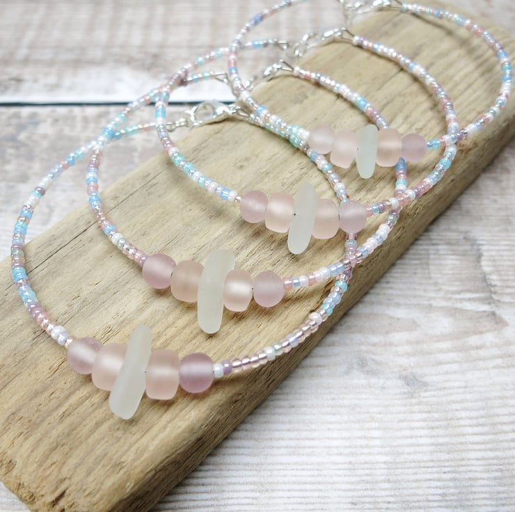Although the design will be the same, each bracelet will vary slightly from the one in the photo as the shape and patina of these colourful little beach gems is down to the sea, making each one completely unique. I'm happy to send photos of ones that are available so you can choose, just pop me a message.