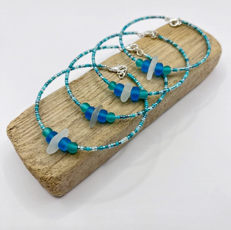 Although the design will be the same, each bracelet will vary slightly from the one in the photo as the shape and patina of these colourful little beach gems is down to the sea, making each one completely unique.