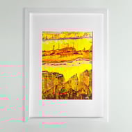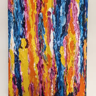 I was inspired to see what effects I could create using a knife blade. The result is a unique and contemporary painting ideal for your favourite space. The painting is an abstracted landscape divided into six sections by reds and yellows.