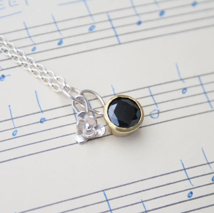 This dainty silver charm necklace with a silver flower and a black cubic zirconia would make a beautiful birthday gift for a friend, an anniversary gift or a nature lover gift.