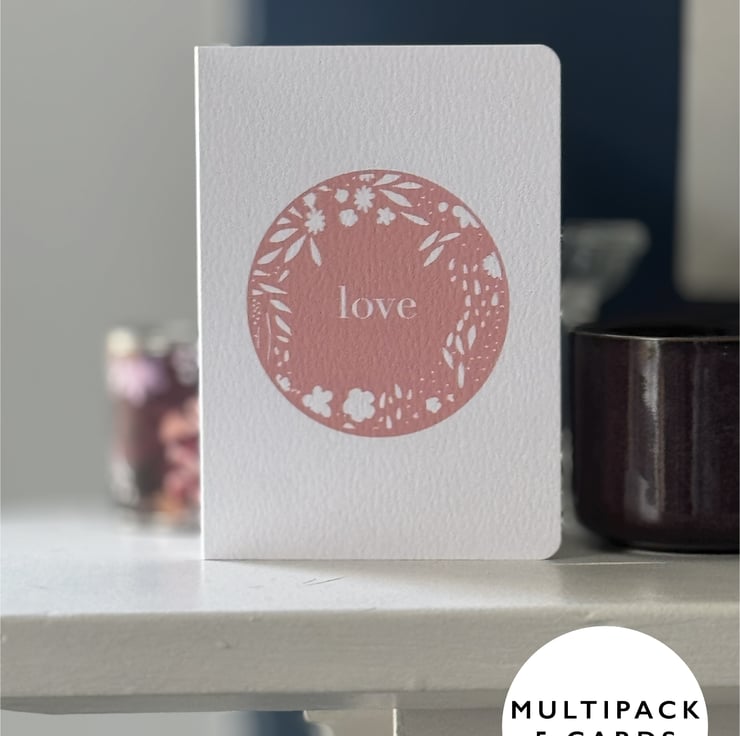 Wedding card full of love, maybe for a birthday but definitely for a celebration! This multipack card selection box of five (5) A6 cards with one design: love.