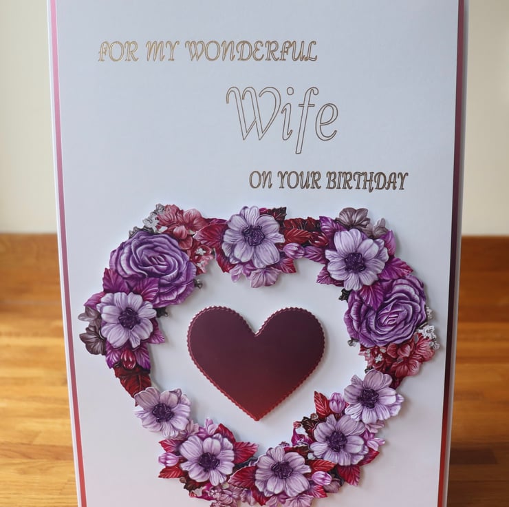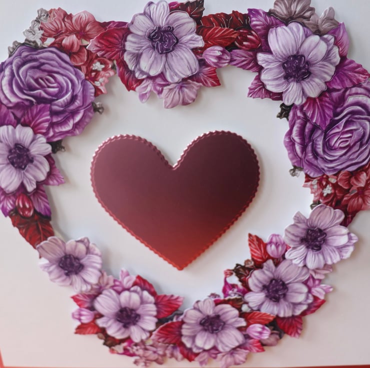The sentiment I have hot foiled in gold, and the flowers are done in a heart pattern with a love heart in rose gold in the middle.