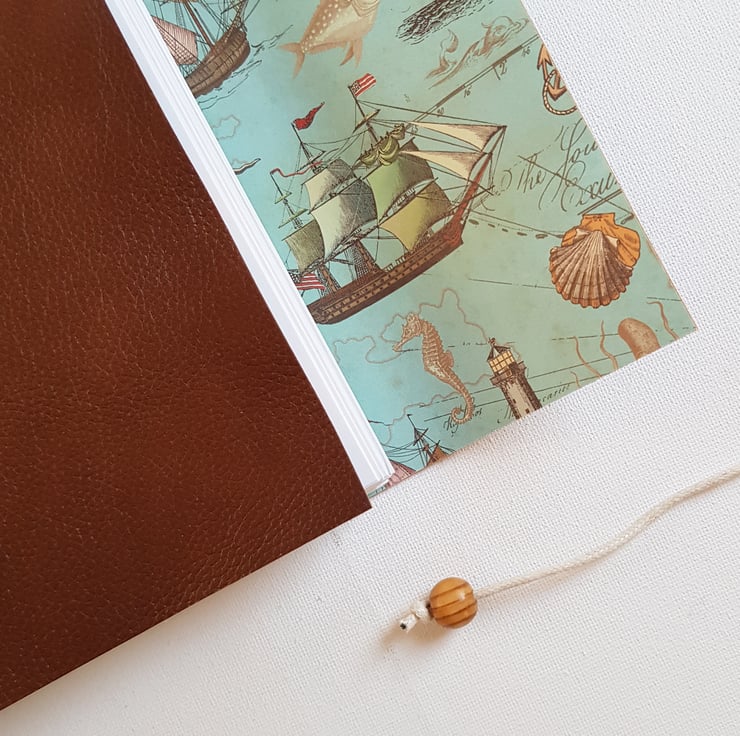 Tall Ships Journal or Sketchbook, Brown Leather, A5, Fathers Day Gift