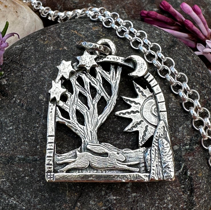 Made using traditional jewellery making techniques, in sterling silver. Using a piercing saw, hand engravers, metal stamps, hammers, filing, soldering and polishing! With an oxidised finish to highlight detail.