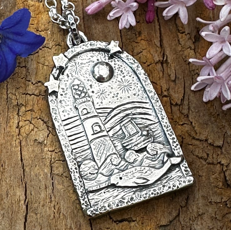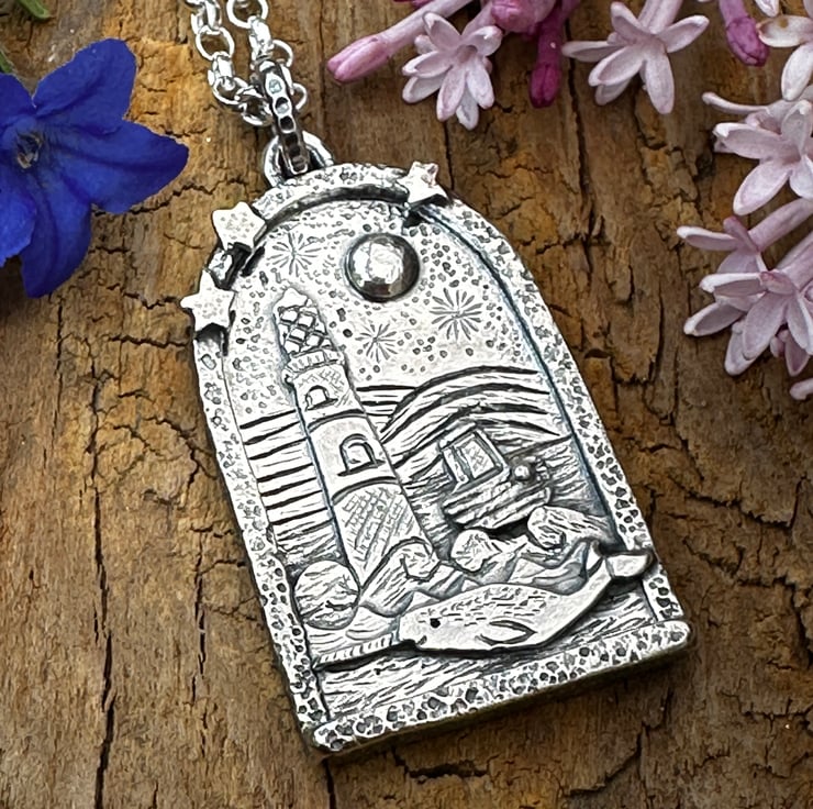 Made using traditional jewellery making techniques, in sterling silver. Using a piercing saw, hand engravers, metal stamps, hammers, filing, soldering and polishing! With an oxidised finish to highlight detail.