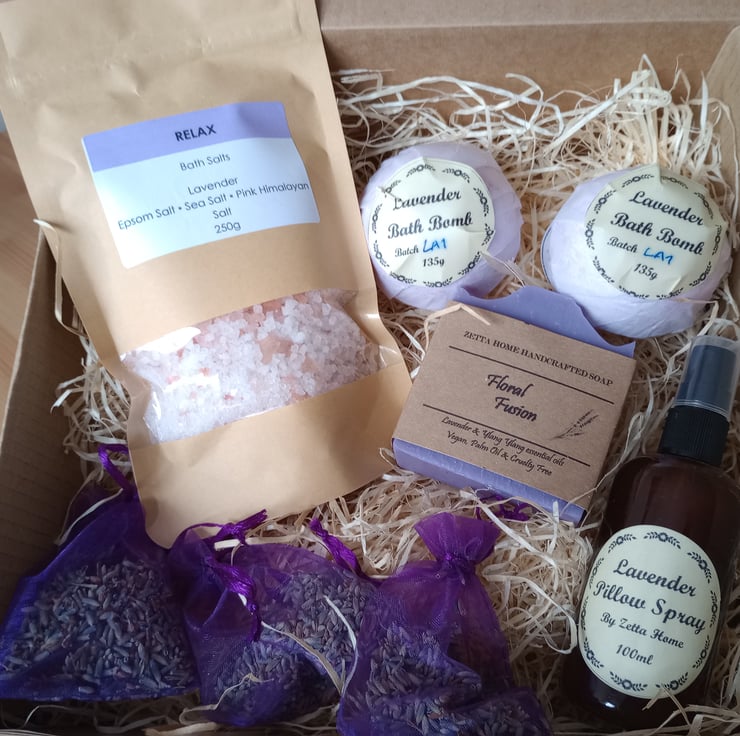 Handmade Lavender Gift Set for many occasions such as relaxation, destressing, birthday, get well soon, sleep well gift or a self pamper.