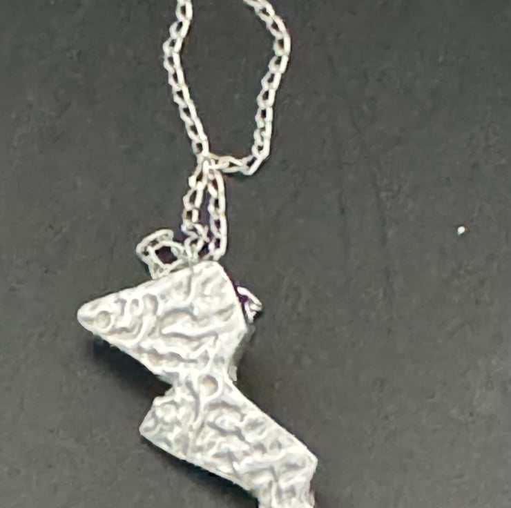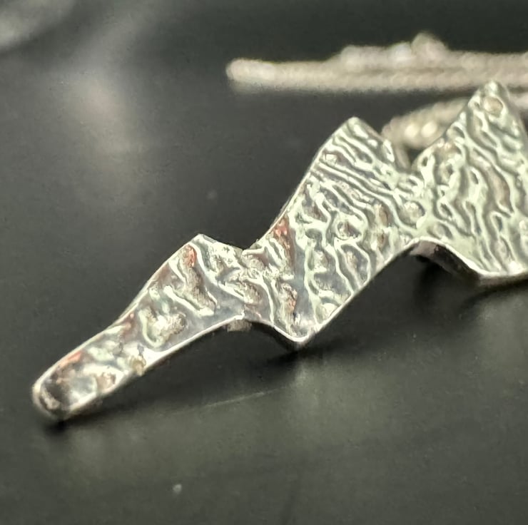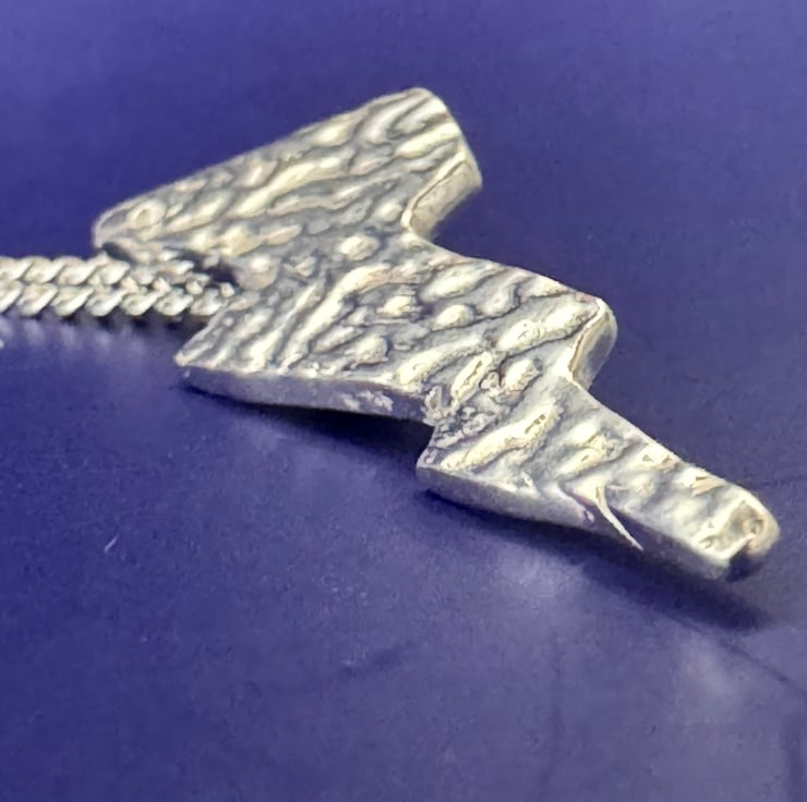 This lightning bolt pendant is hand crafted in fine silver 999. It has a delicate texture and has been highly polished to give a beautiful shine.