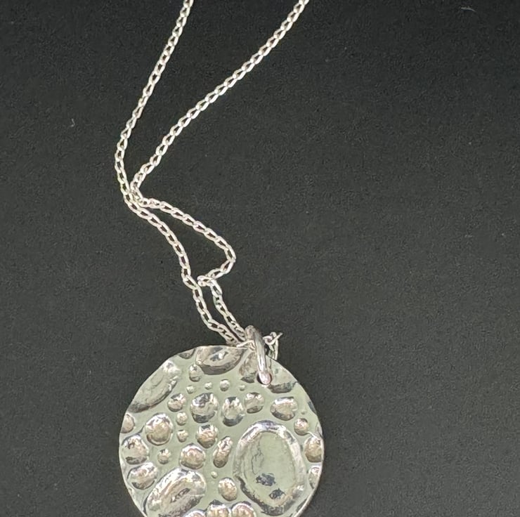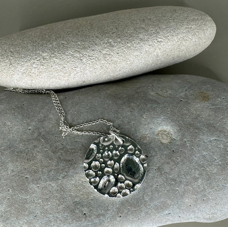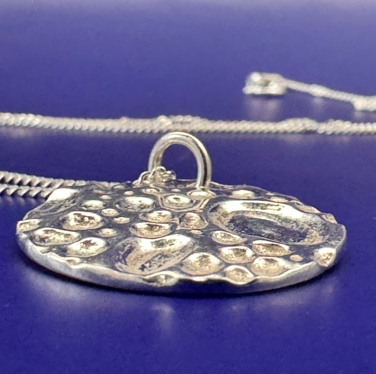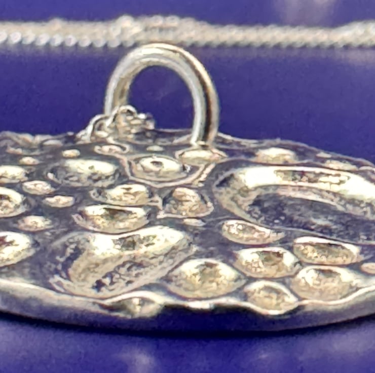 This pendant is hand crafted in fine silver 999. It has textured finish and has been highly polished to give a beautiful shine.