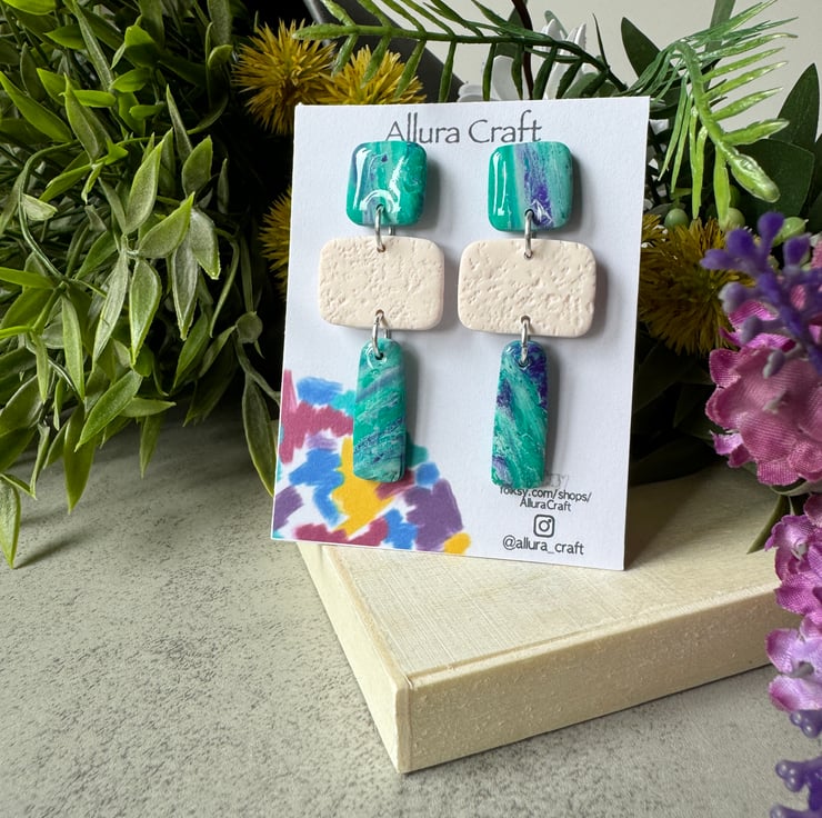 Apatite Faux Stone effect with whisps of purple and white and a luscious coating of glossy uv resin providing stunning enhancement and finish to the pieces