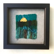 Root System is a one of a kind, mounted tapestry weaving which has been handwoven with a mixture of cotton, silk, mohair and wools, including some of my hand spun wool. It is woven in various shades of brown, green, grey and shades of cream and white on a cotton warp in green and brown. I have used eccentric weave and random weave techniques to create texture and pattern and I have added extra warps or supplemental warps, and woven them to create the roots and then interlaced them. It is stitched onto a piece of felt covered mdf which measures 28 x 37 x 2cm and hangs from d rings with twine.13.5 x 18cm and the length including the longest of the roots is 32cm. It hangs with a single d ring.