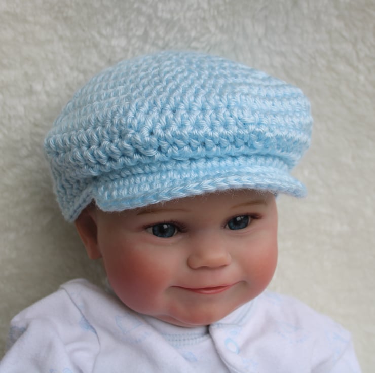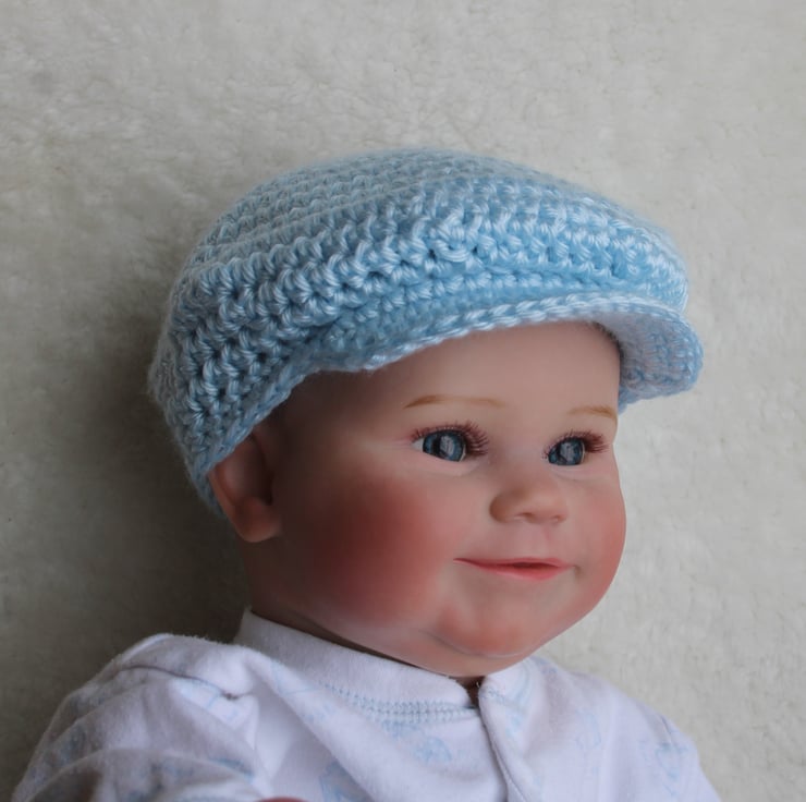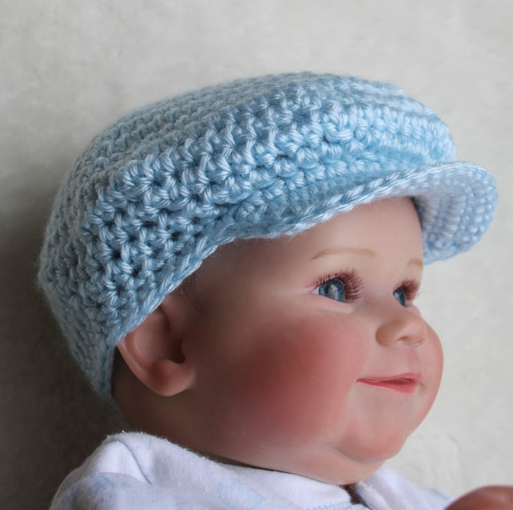 A lightweight newsboy cap that is perfect for a baby boy or a baby girl to wear during the warmer months.
