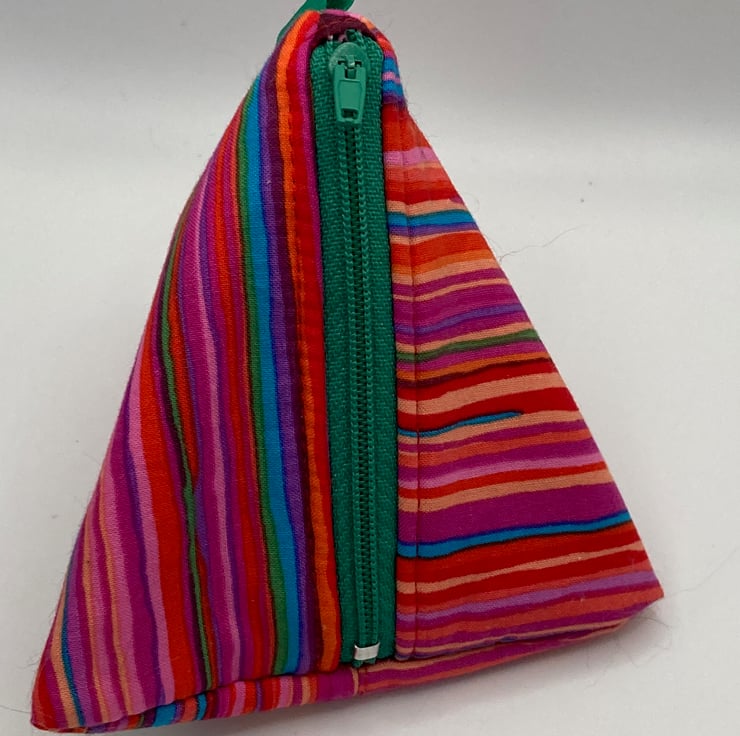 Wee triangle pouches, perfect to hold your phone charger and lead. Good too for a lipstick, hair bobbles, jewellery. Stunning Kaffe Fasset fabric with soft layer of wadding. Various fabrics available. Size approximately 10/11cm on each side.
