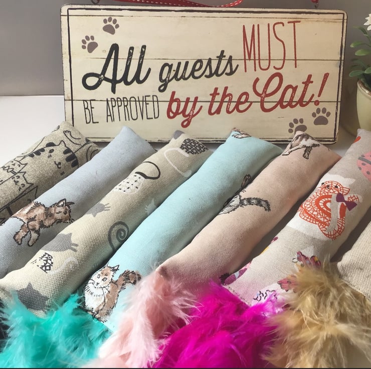 I have made some kickers with the left over fabric for my fur baby so the kickers could be tried and tested for catnip lovability.
