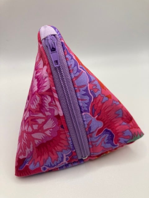 Wee triangle pouches, perfect to hold your phone charger and lead. Good too for a lipstick, hair bobbles, jewellery. Stunning Kaffe Fasset fabric with soft layer of wadding. Various fabrics available. Size approximately 10/11cm on each side.