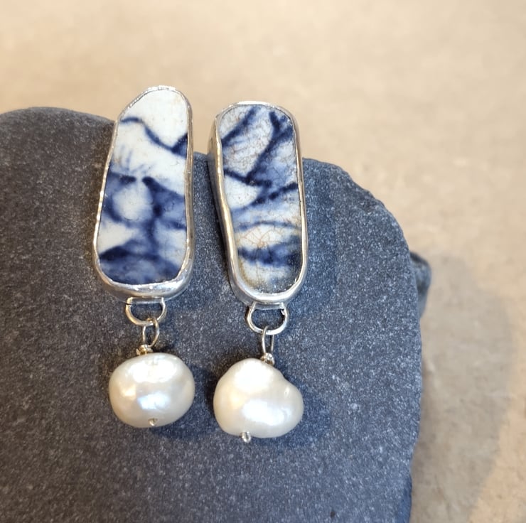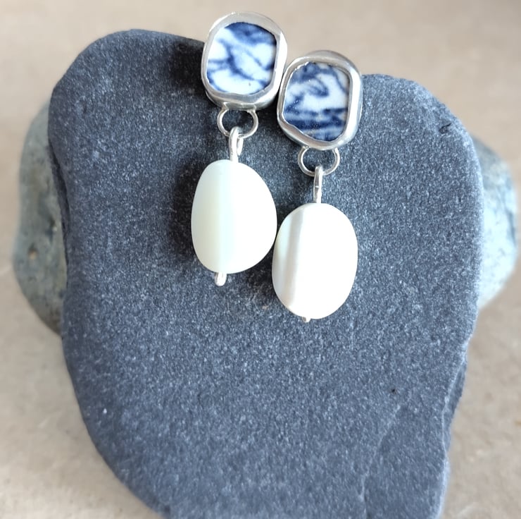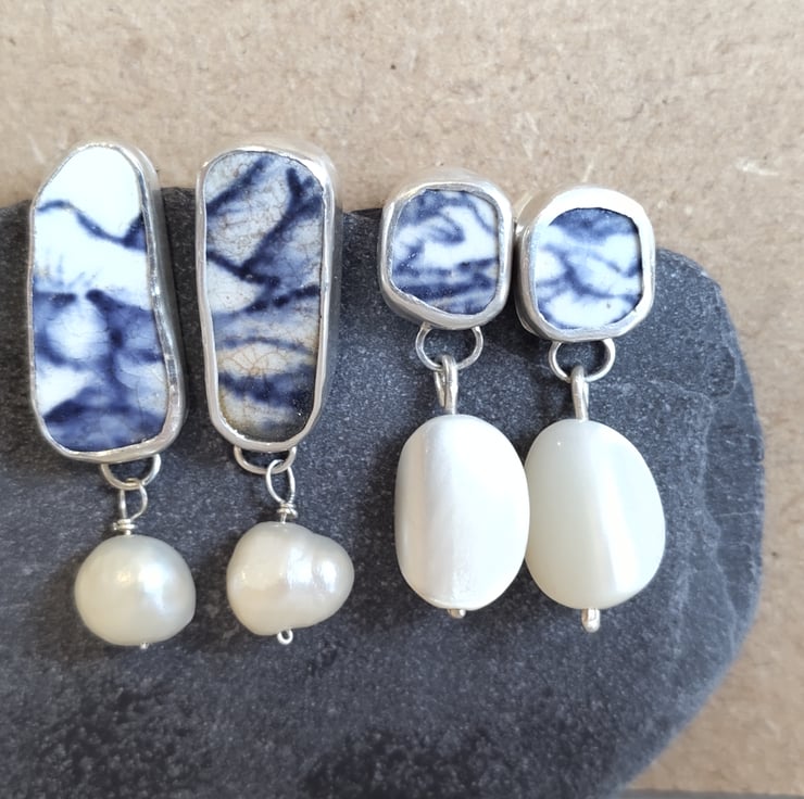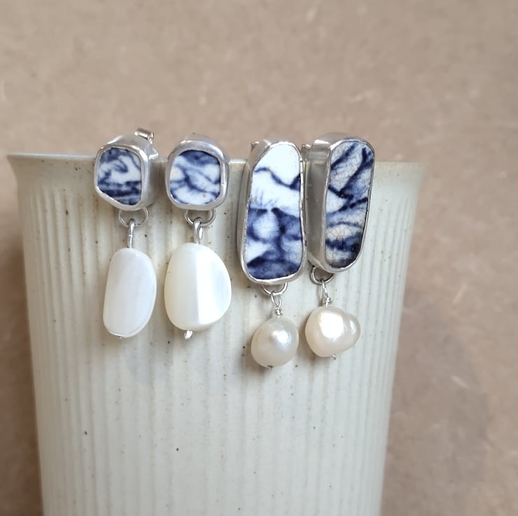 Whilst treasure hunting on Ramsgate Beach, I found a beautiful piece of broken china. There will always be a footprint for the things we buy, but made with beach treasure, recycled silver and reclaimed mother of pearl or pearls, these earrings are about as environmentally conscious as they come! x