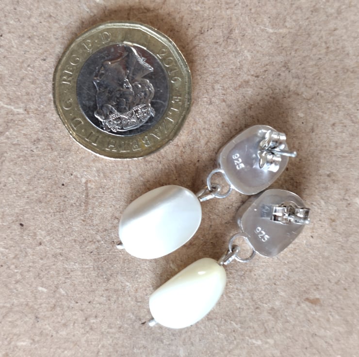 Option 1: Smaller silver studs set with reclaimed vintage mother of pearl beads
