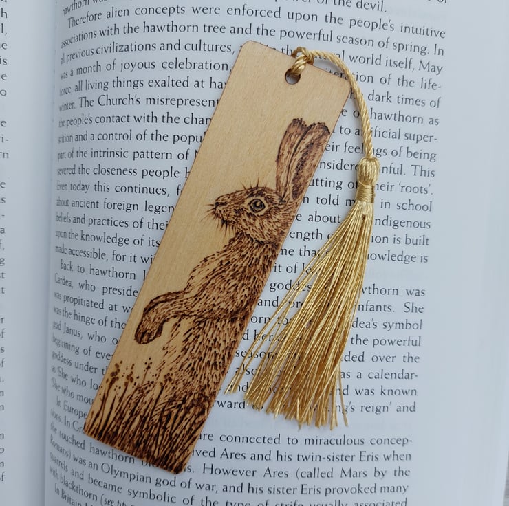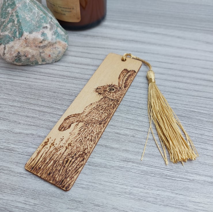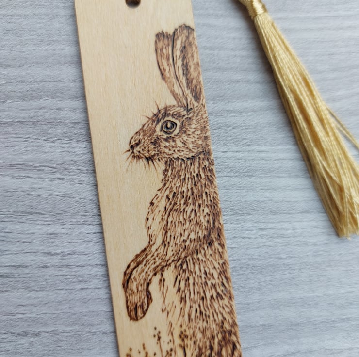This lovely hare bookmark would be an ideal gift for a nature lover. All my bookmarks are unique because I sketch the design straight onto the wood, and then burn the design by hand using a pyrography tool. These are handmade collectable art, not laser engraved.