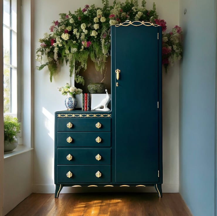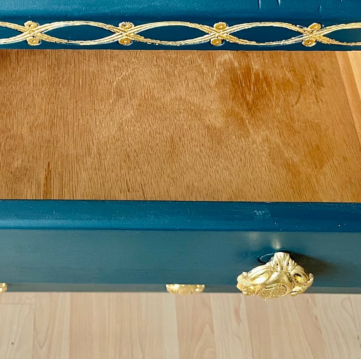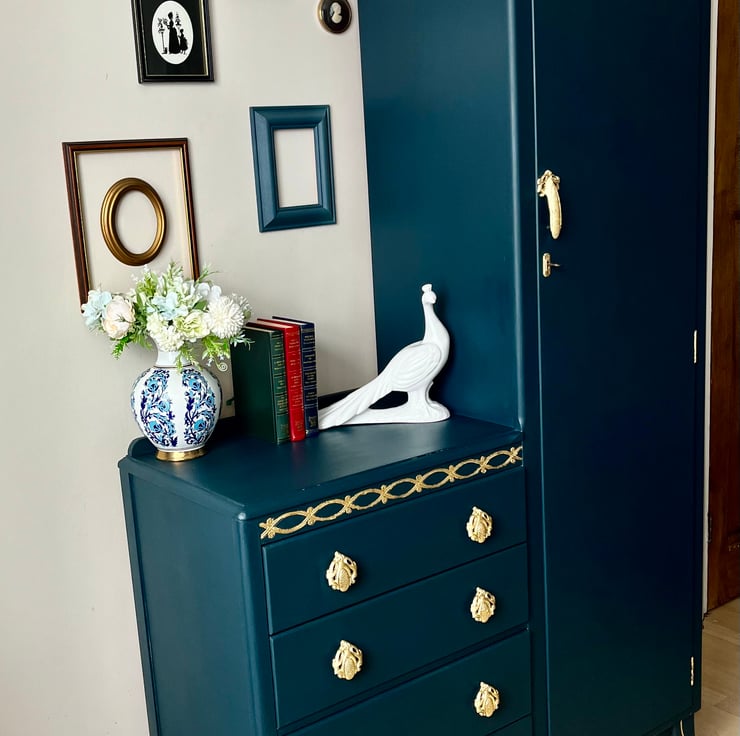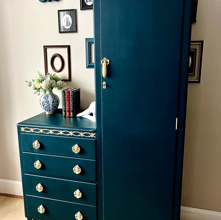 The set was painted in Fusion Mineral Paint - Chestler , a complicated blue green that is boasting with depth and intention.