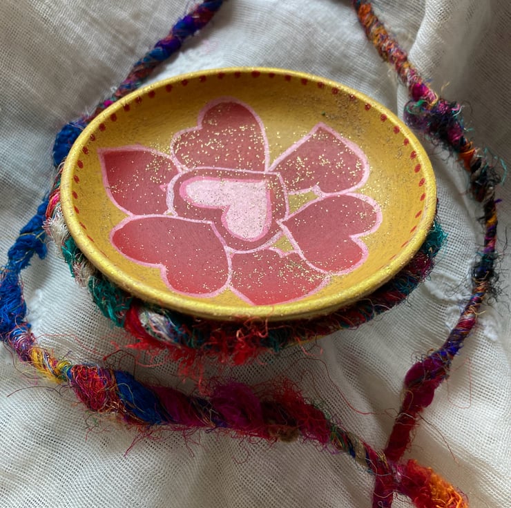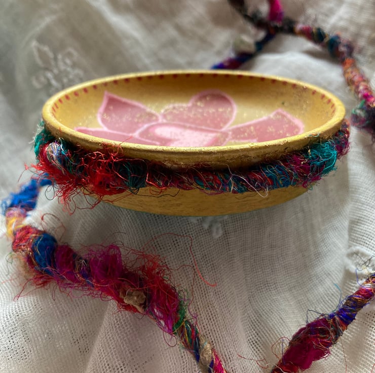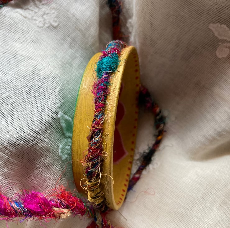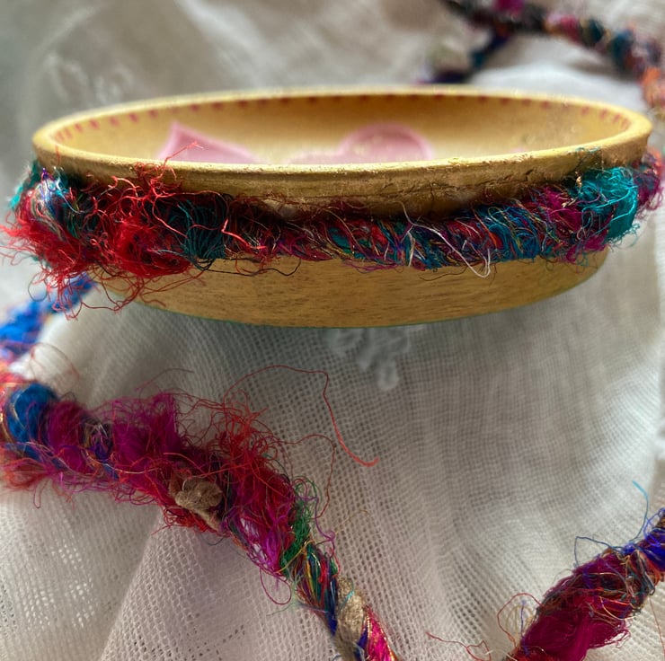 Some twisted sari silk yarn has been added around the outer area which makes it that little bit quirky.