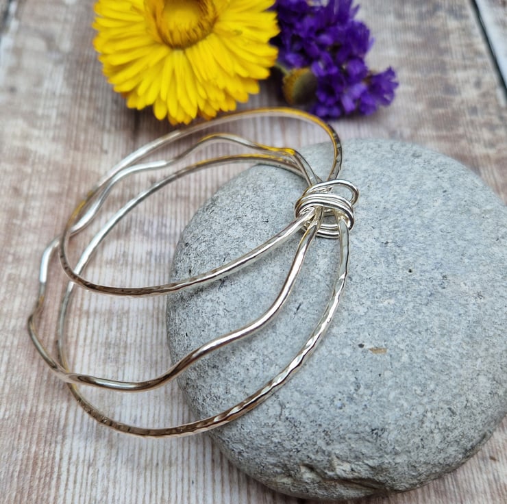 Recycled Sterling Silver Triple Bangle Set - Hammered and Wavy