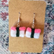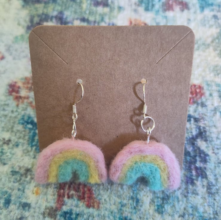 Unique and lightweight needle-felted earrings resembling rainbows.