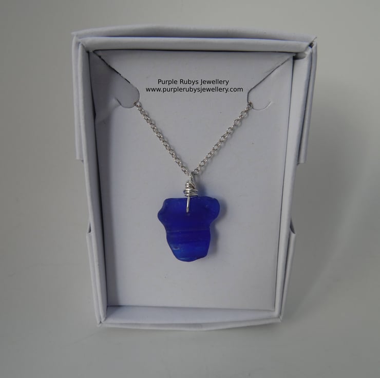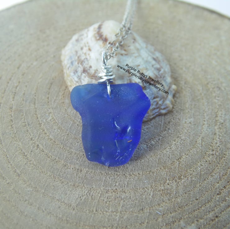 Deep Cobalt Blue Lyme Regis Bottle Neck Sea Glass Necklace N627
