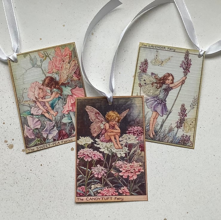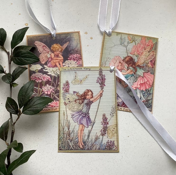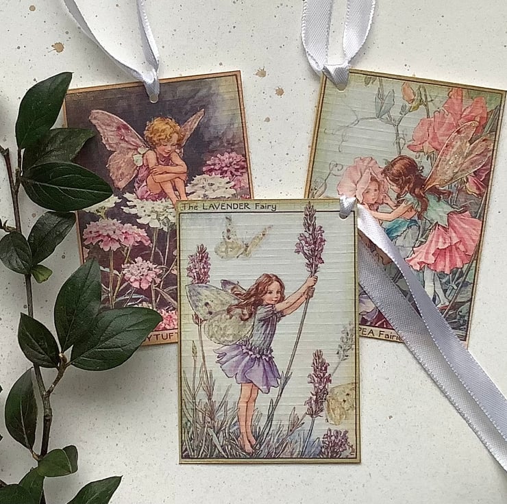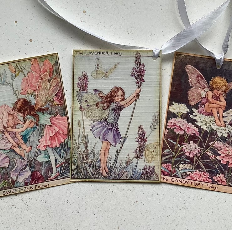 You will receive three tags( as pictured )..... 1 x Sweet Pea Fairy , 1 x Candytuft Fairy, 1 x Lavender Fairy.