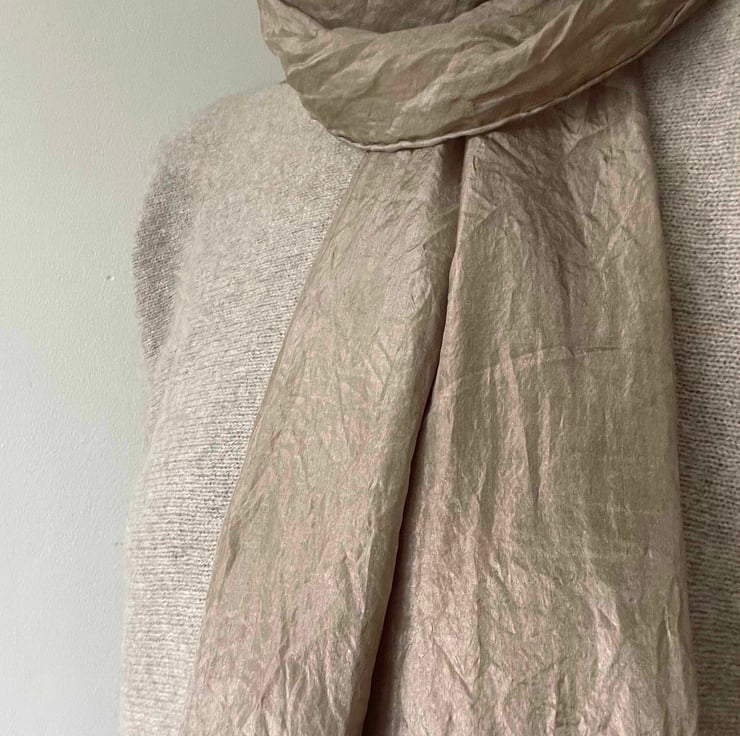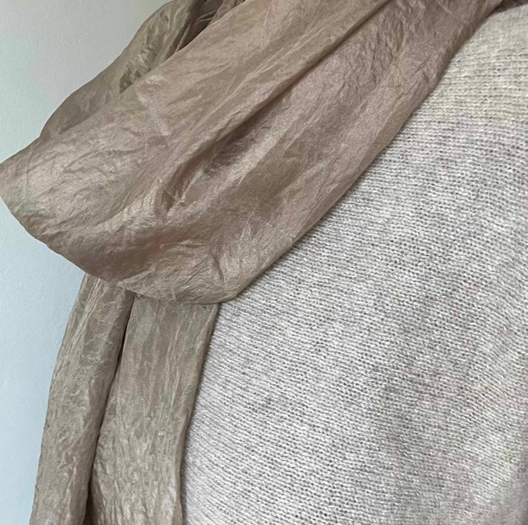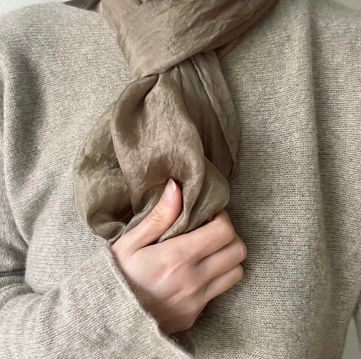 A lousterous silk scarf in a neutral taupe shade