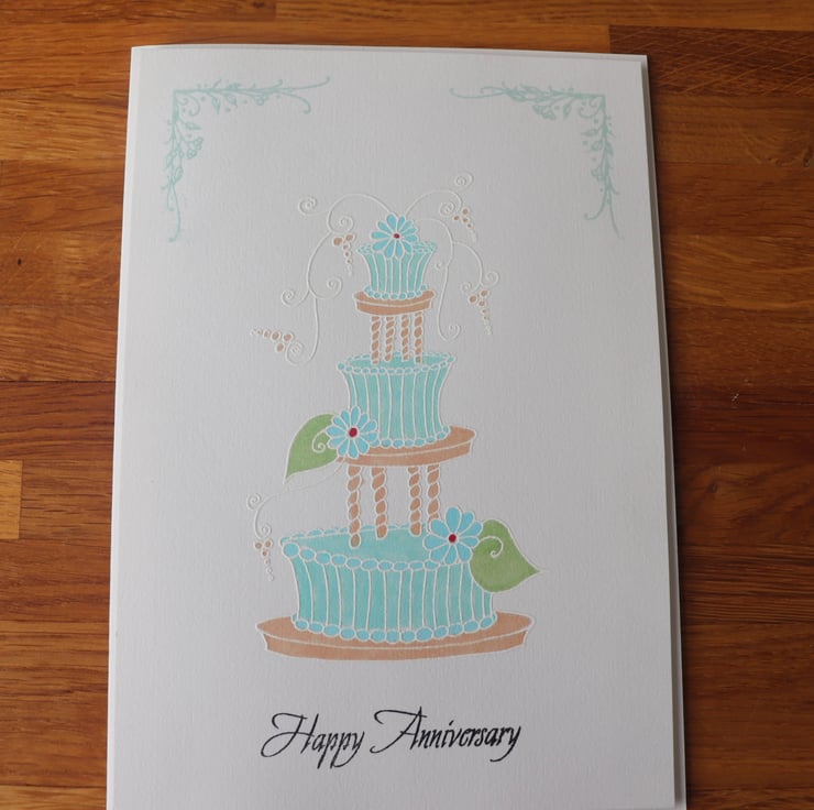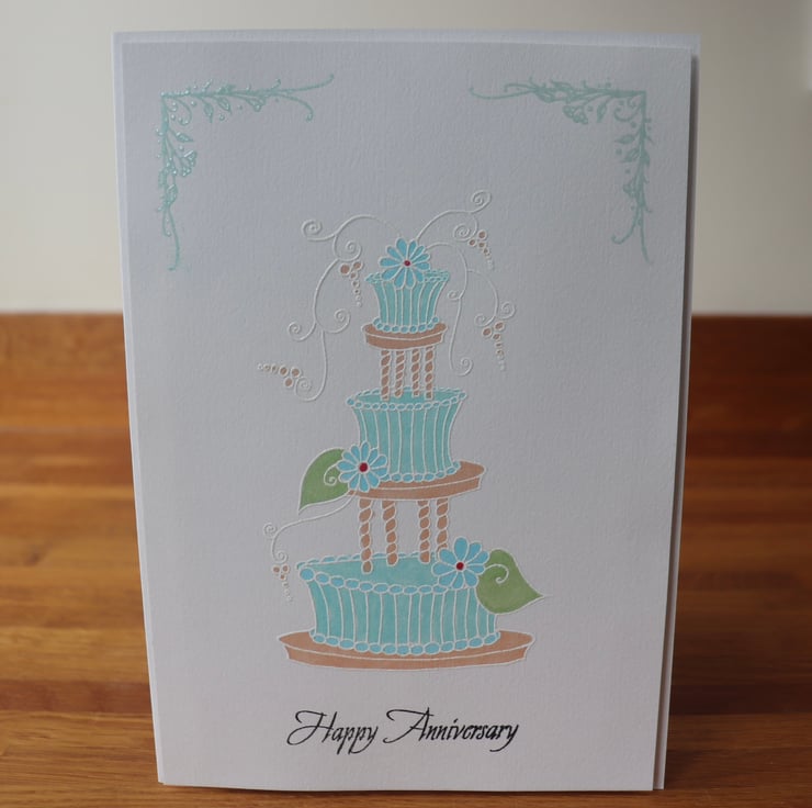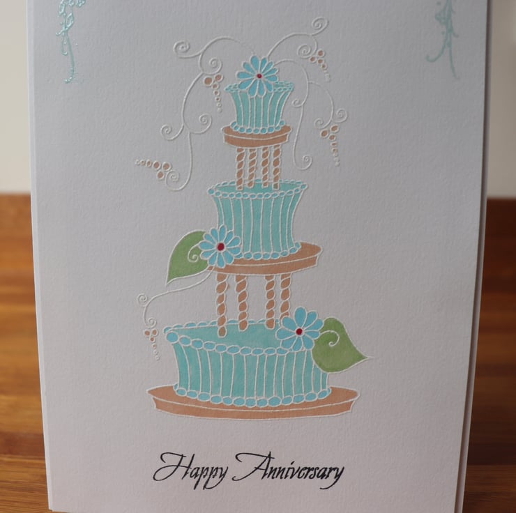 I have heat embossed the design in a gloss white embossing powder and then coloured in the design.