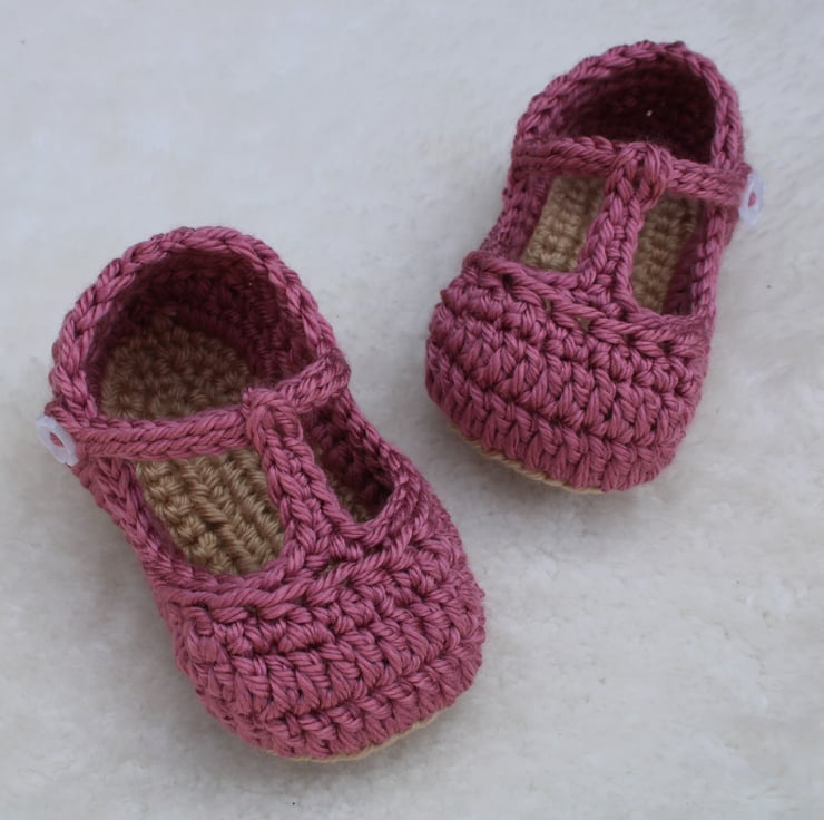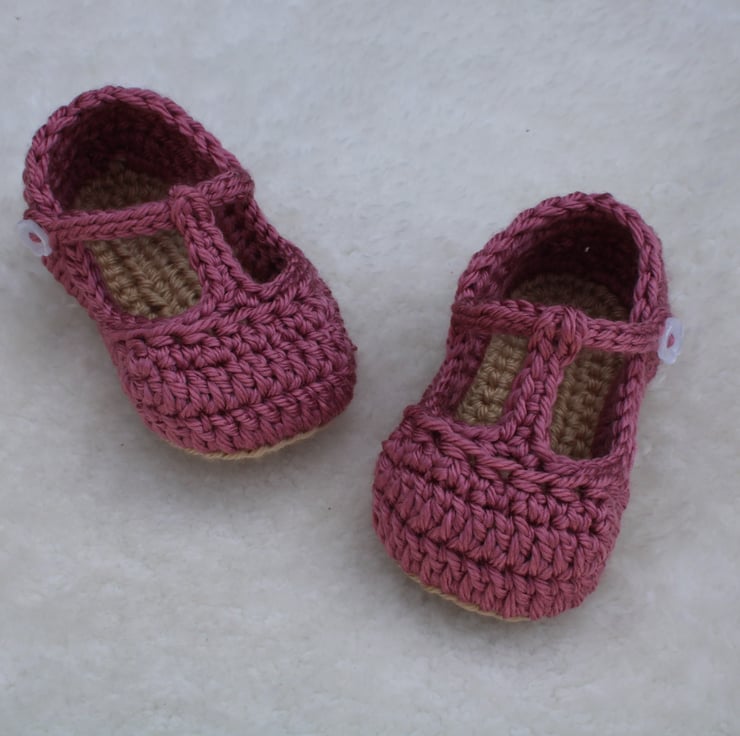 A soft structured pair of t-strap shoes that are perfect for a baby girl.
