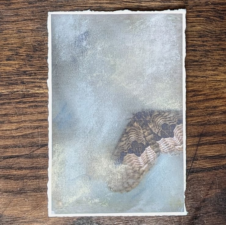 I had to cancel my membership at the local printmaking studio, and I didn't have any presses if my own. I wanted to print make in some way. The only thing I had in my studio that could replicate images was a cheap all in one printer, I'm a bit of a traditionalist and love using physical media over digital and didn't want to just print out something I did on the computer, that's where the watercolour, pastel and real objects came in.
