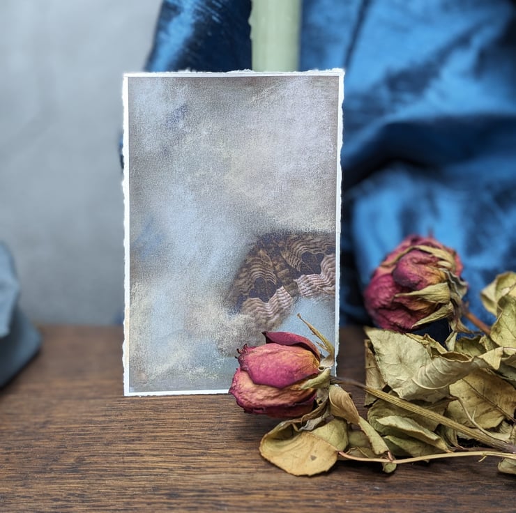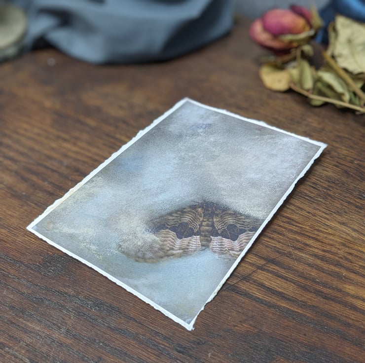 The moths I use are from old collections that have been given to me. I'd never harm any animal to make art. Moths to me are very special little creatures and deserve way more credit than they are due!