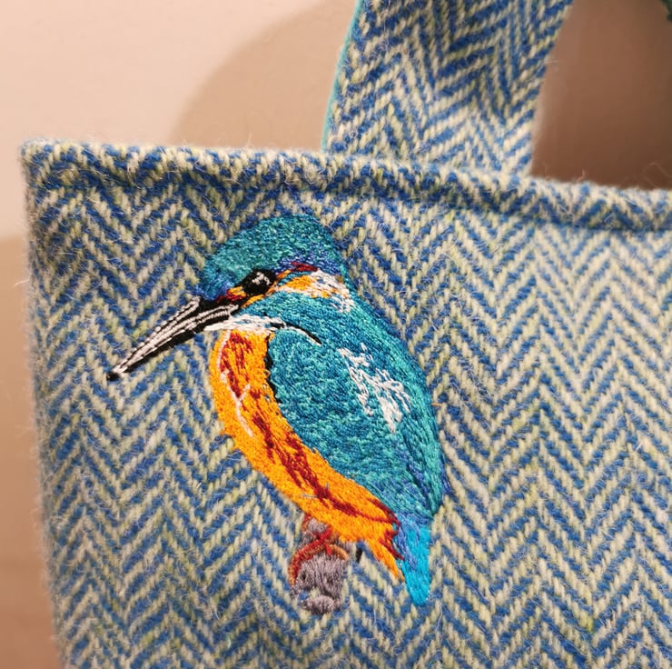 This is a gorgeous coloured Tweed with the equally stunning kingfisher design
