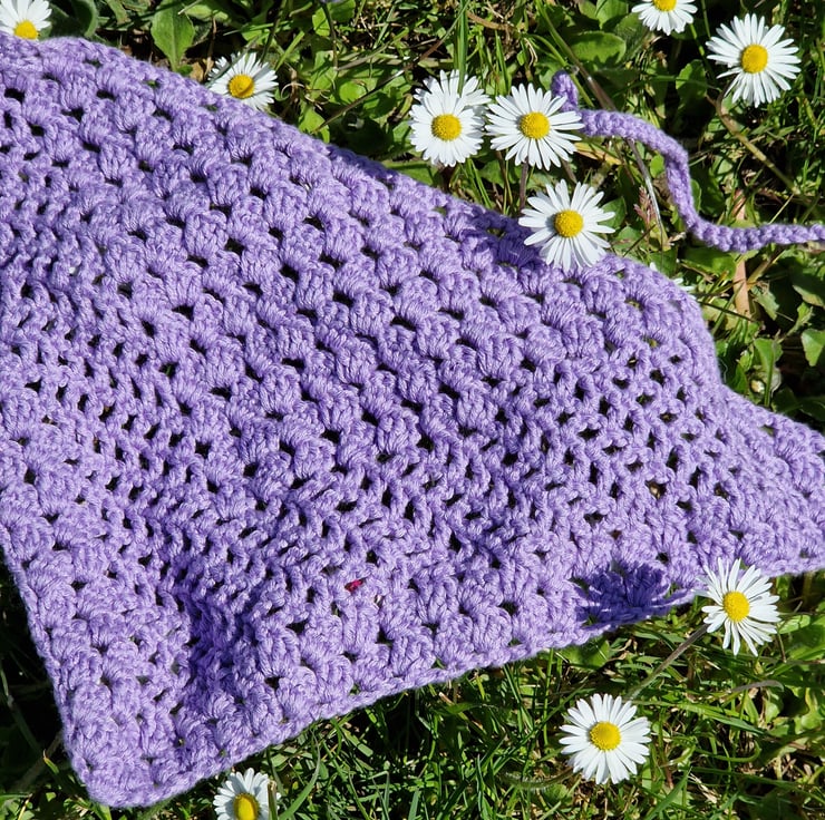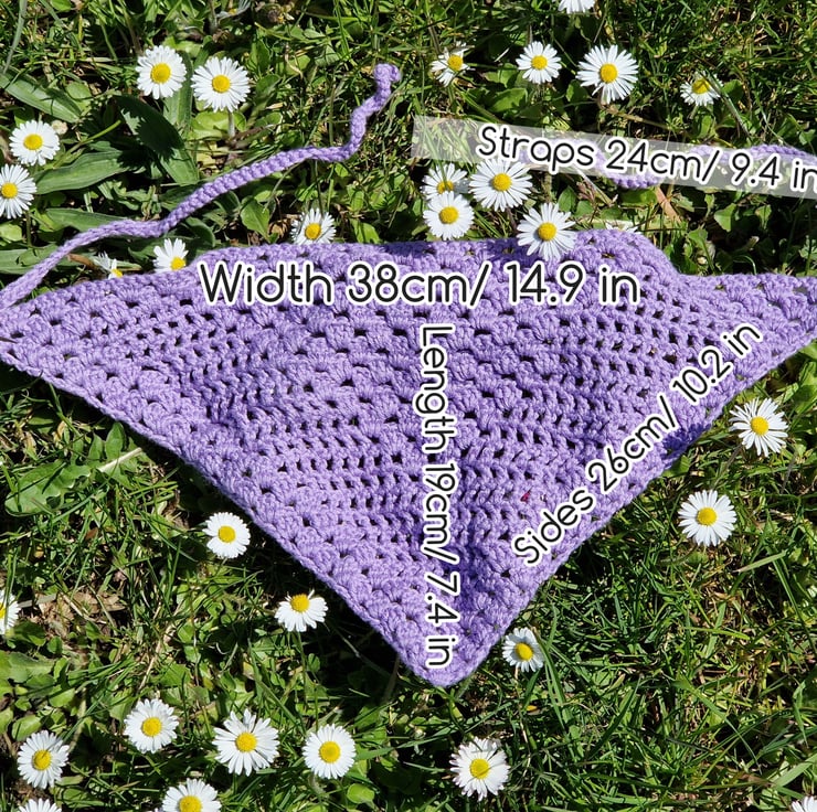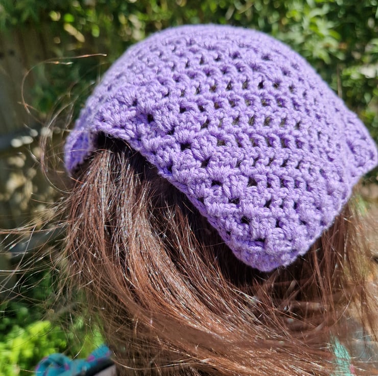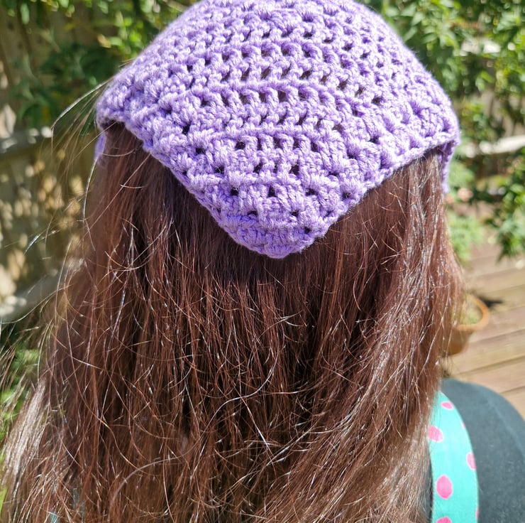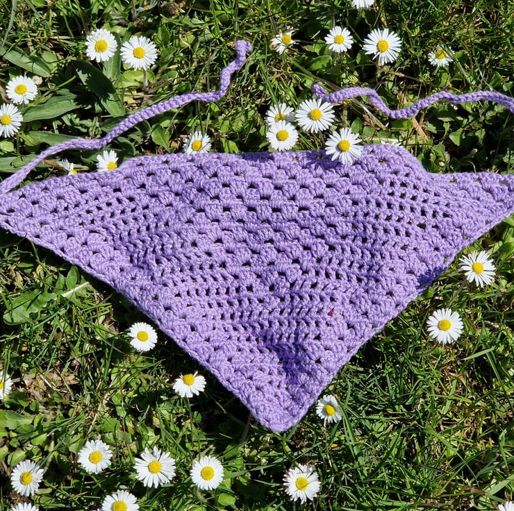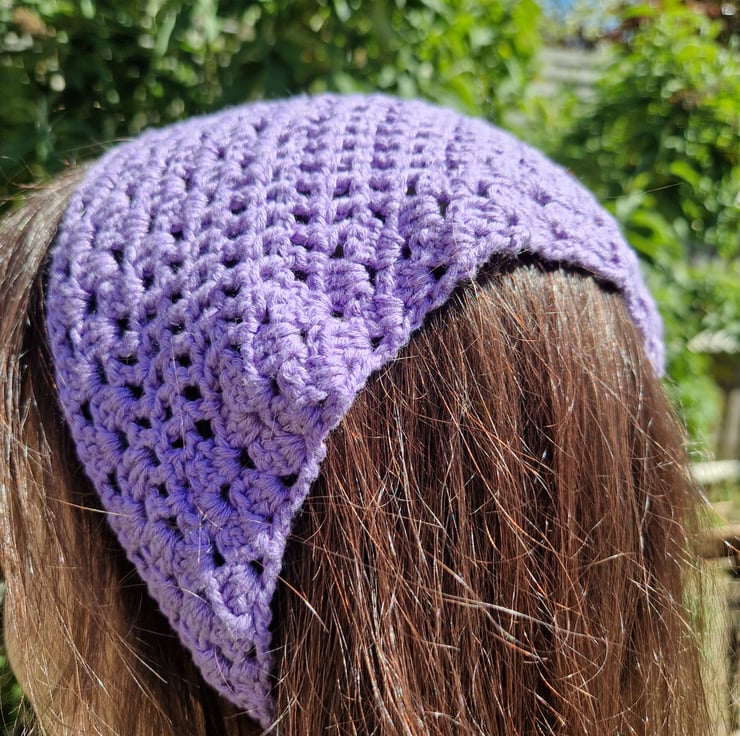 A handmade lavender purple crochet bandana, made with a blend of bamboo and cotton yarn. Lightweight, soft and colourful, it's the perfect hair accessory for sunnier days! Makes a perfect self-care treat, or a beautiful birthday gift!