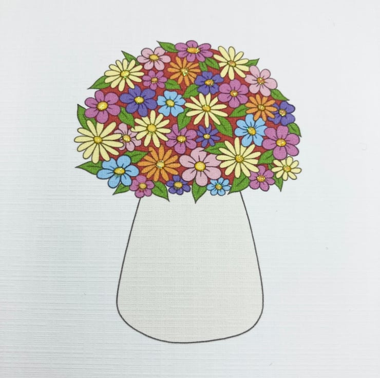 This pretty Floral Toadstool card has been designed using my own original artwork. The card has been printed out onto good quality linen embossed card and has been finished off with a little glitter detail.