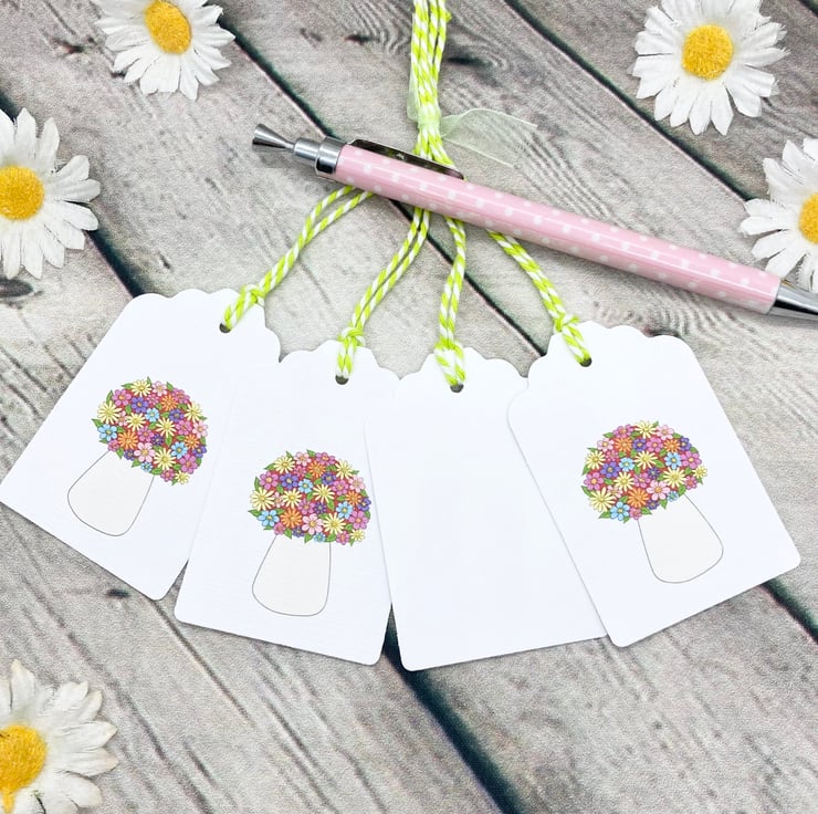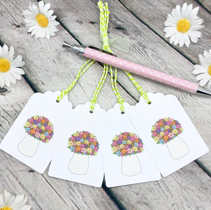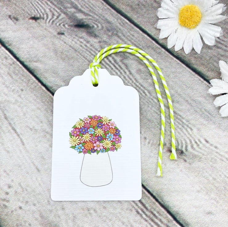 Each tag has been printed out onto good quality white linen embossed card and has lime green coloured twine attached. I have also added a little glitter detail. Each tag is blank on the reverse for you to write your own message.