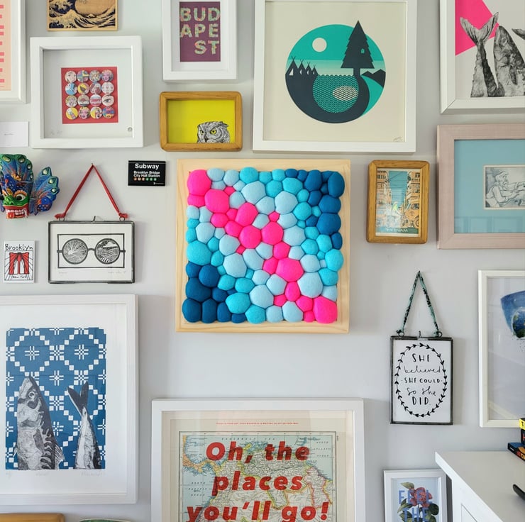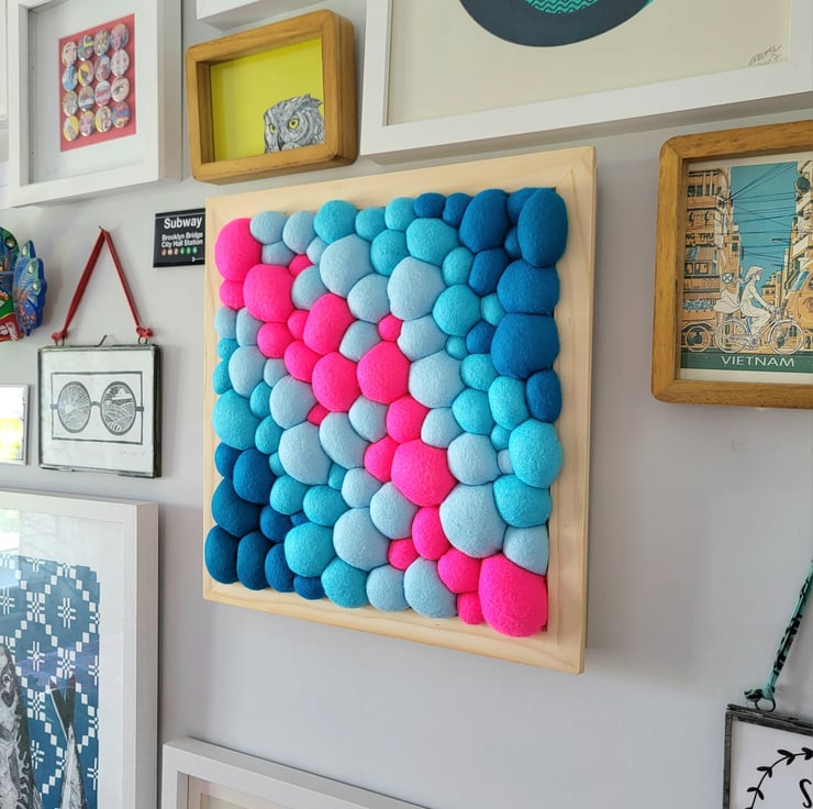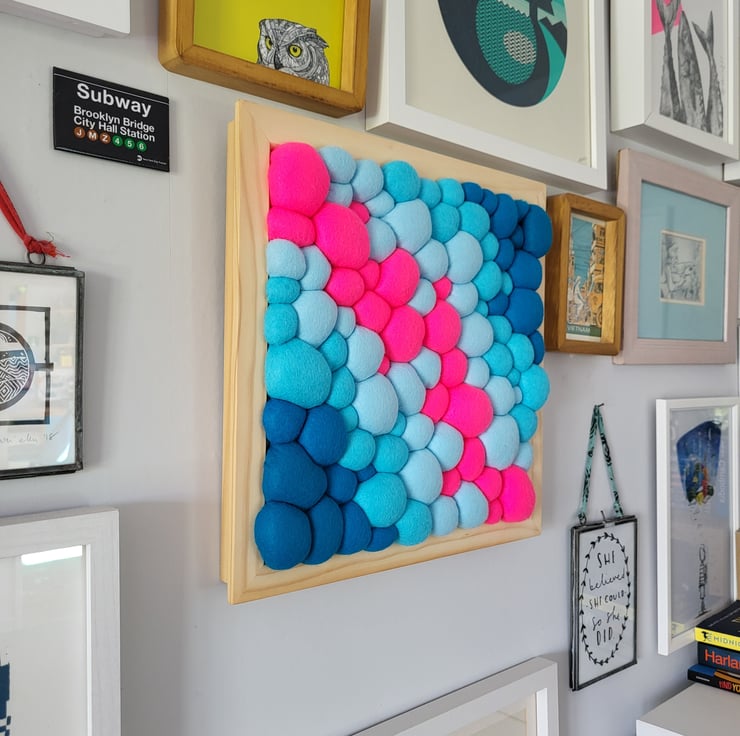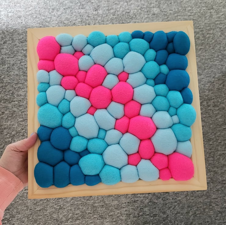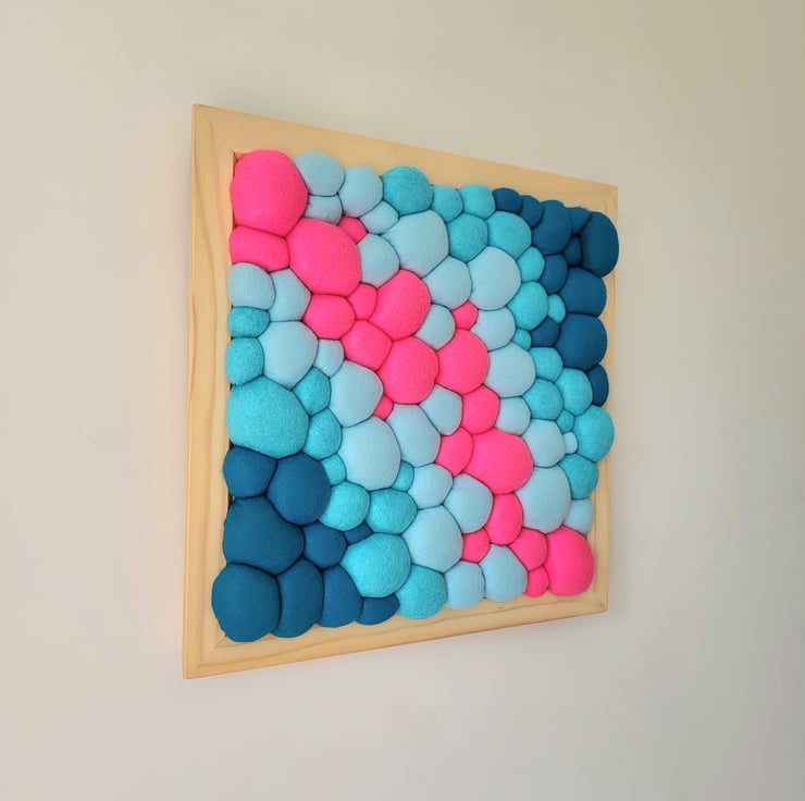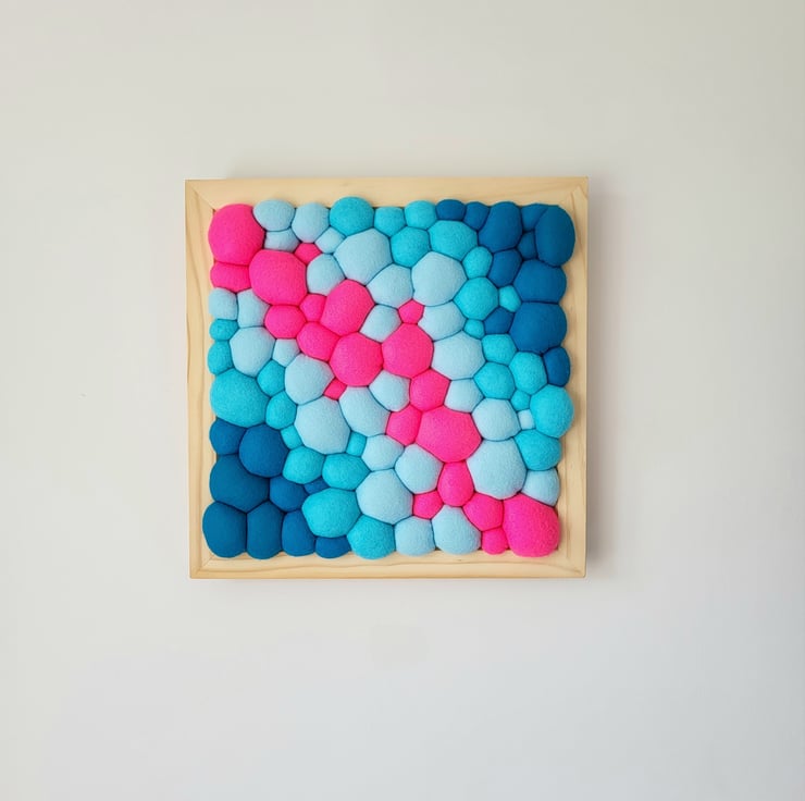 Neon Pink and Blue Felt Wall Art - Abstract Tactile Blobs