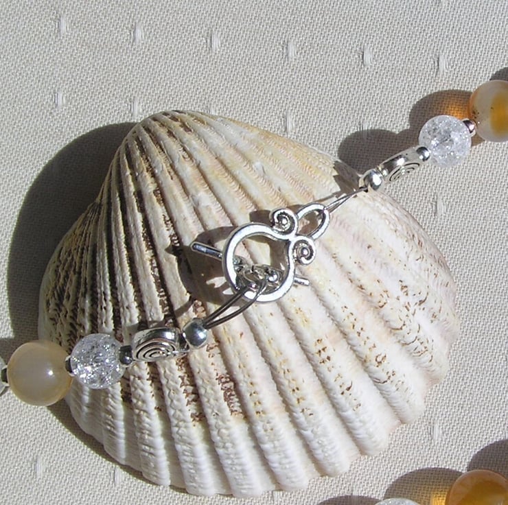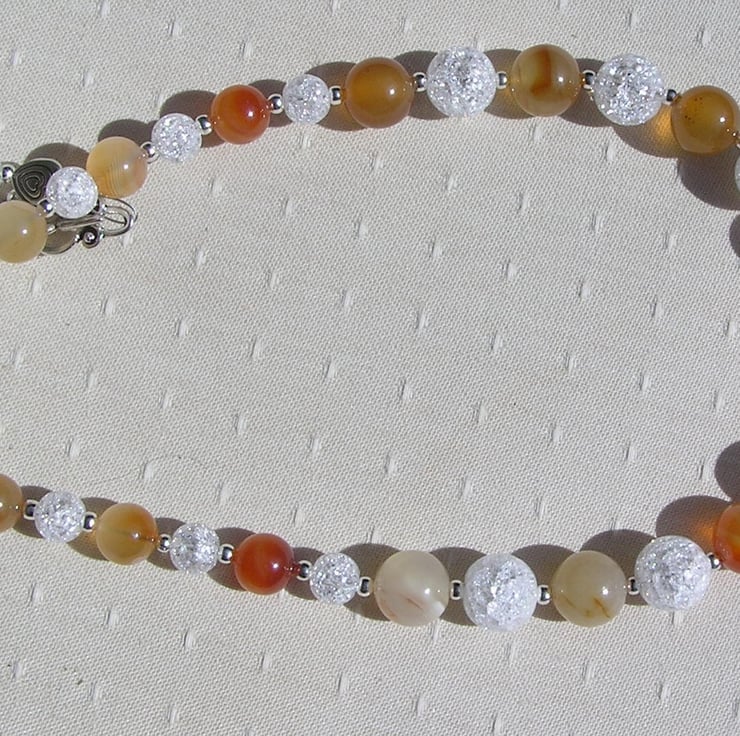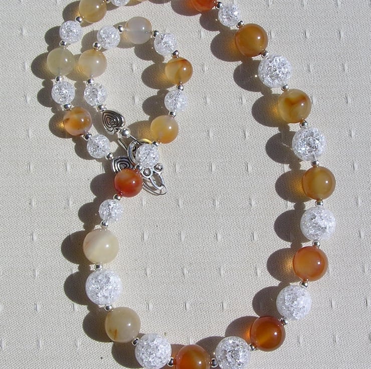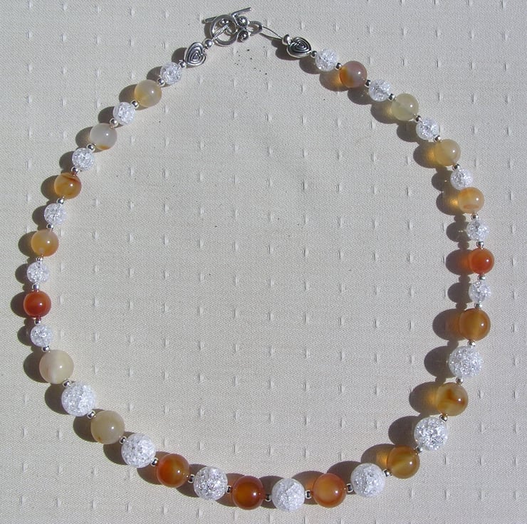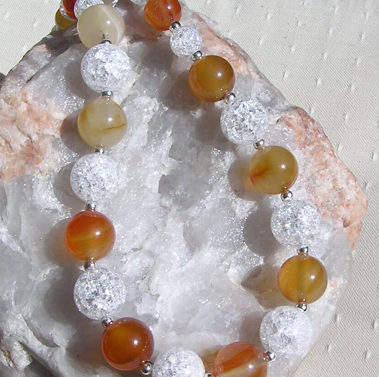 This Stunning Sumptuous Necklace is made from alternating Orange Carnelian Agate, in varying shades, and Crackled Clear Quartz chunky round beads, each separated by tiny Silver spacer beads - a Gorgeous soothing combination that will look stunning either worn casually or with something more Elegant for a Special Evening out