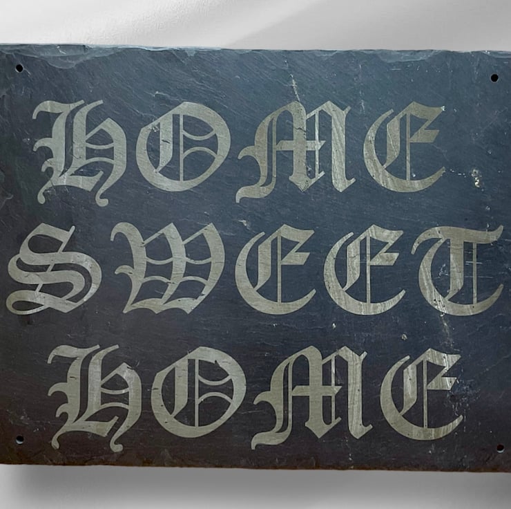 The slate has been engraved with the words Home Sweet Home.
