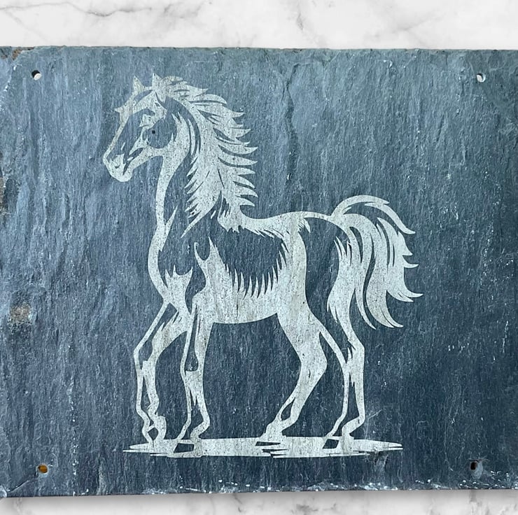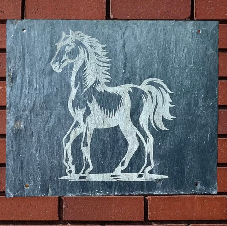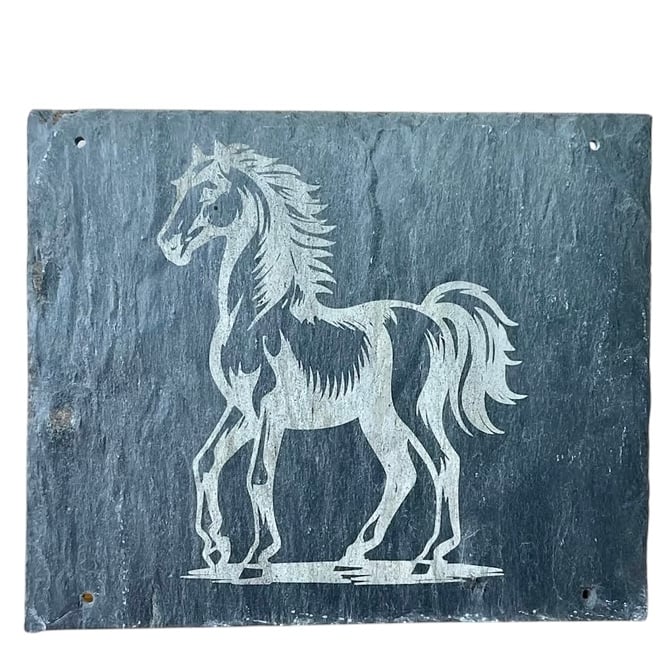 This Horse on slate wall decoration adds a unique and distinct touch to the decor.