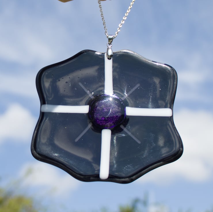 We have a series of Fused Glass Poppies in a selection of colours. This one is a deep purple colour. This colour poppy remembers the animals who have been victims of war.