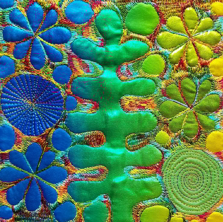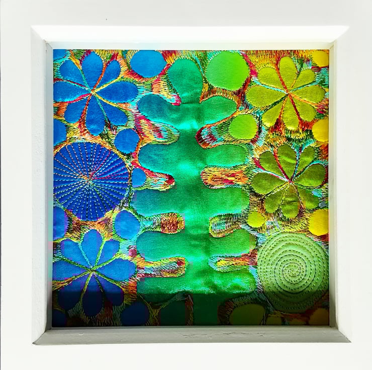 Made from the finest hand dyed Egyptian cottons and silks with the free machine embroidery use of sewing.