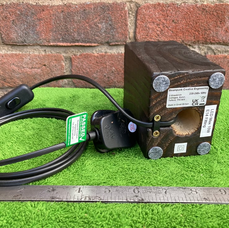 My Wood Block Table Lamp is supplied safety tested and certified UKCA compliant and ready to use to bring elegant upcycled mood lighting to your home