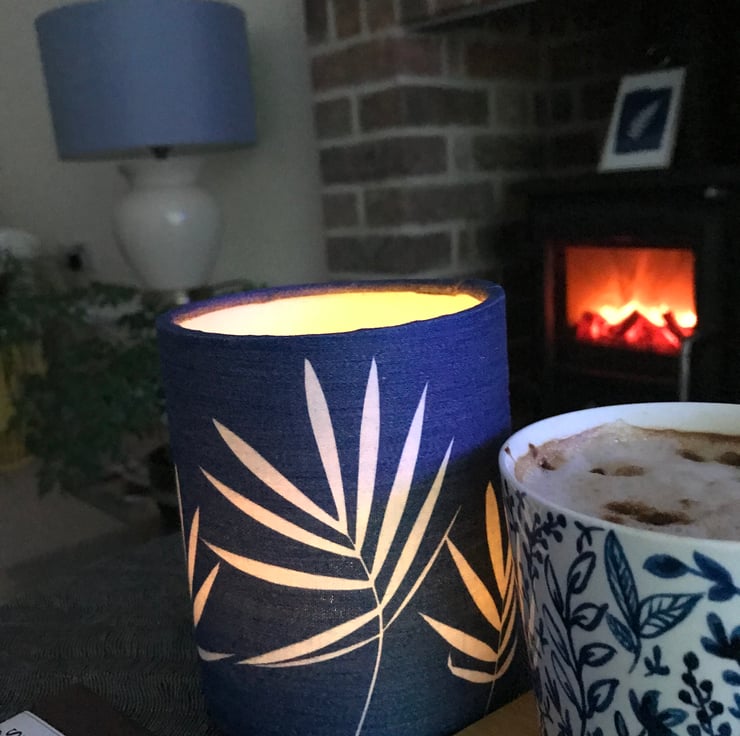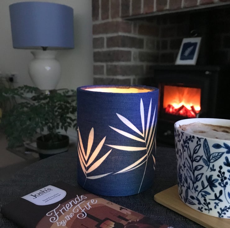 Original and charming -Cyanotype on fabric Lanterns for tea or string lights. Perfect for adding ambience and charm to an evening in. Pretty botanical designs made using real plants and sunshine. When the lanterns are lit the botanicals come to life and show off their personalities.